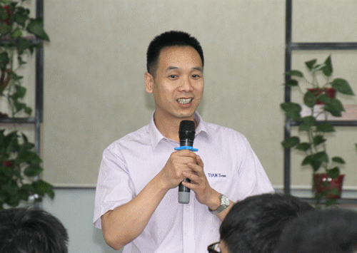 新生入職課程的最后一天,公司高層領導、各子(分)公司總經理與新員工對坐一堂。新員工們向大家分享自己入職后的感受,也將自己心里的疑惑講給領導聽,一對一的交談。新員工們真真切切的感受到了天俱時“平等、尊重、信任、合作、分享”的公司文化。最后,集團副董事長劉松對新員工提出了期望并許下美好祝愿。